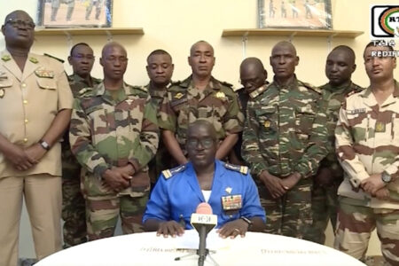 In der von Oberstleutnant Amadou Abdramane verlesenen Erklärung heißt es, dass Präsident Mohamed Bazoum gestürzt und die Verfassung aufgrund der sich zunehmend verschlechternden Sicherheitslage und der sozioökonomischen Krise, die das Land durchmachte, außer Kraft gesetzt wurde.