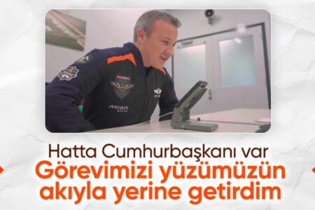 Präsident Erdoğan sagte zum ersten türkischen Astronauten Gezeravcı, der ihm mitteilte, dass die Türkei ihre erste bemannte Mission abgeschlossen habe und an den Punkt zurückgekehrt sei, an dem sie am Ende ihrer Mission in den USA sein sollte: „Mashallah, Sie haben sich mit der Welt getroffen.“ “ sagte. Präsident Erdoğan dankte Gezeravcı für die erfolgreiche Erledigung der Aufgabe und sagte: „Wenn Sie nach Ankara kommen, werden wir hoffentlich ein privates Treffen abhalten und uns den gesamten Prozess im Detail erklären. Darüber werden wir uns freuen. Sie werden sehr wichtige Aufgaben haben.“ von jetzt an.“ er sagte.