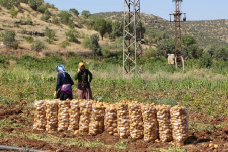 Hasan Yusuf, der mit seiner Frau arbeitet, erklärte, dass sie diesen Job schon seit Jahren machen und sagte: „Wir arbeiten zusammen, Männer und Frauen. Wir arbeiten für unser Brot. Der Kartoffelanbau hier ist eine Einnahmequelle für uns alle. Mardins Boden ist sehr fruchtbar. Als Angestellte werden wir sehr müde.“