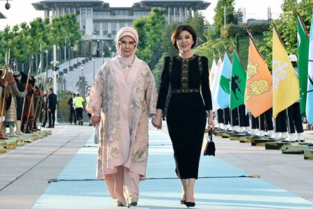 Emine Erdoğan, die Ehefrau von Präsident Recep Tayyip Erdoğan, berichtete auf ihrem Social-Media-Account über ihren Besuch in der Präsidentennationalbibliothek mit Ziroat Mirziyoyeva, der Ehefrau des usbekischen Präsidenten Şevket Mirziyoyev.