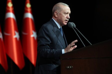 Präsident Recep Tayyip Erdoğan spricht beim Turkey Century Education Model Promotion Program, das an der Ahmet Keleşoğlu Science High School in Ataşehir, Istanbul, stattfindet.