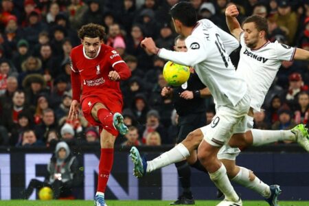 Die Tore, die Liverpool den Sieg bescherten, erzielten Dominik Szoboszlai in der 28. Minute, Curtis Jones in der 56. und 84. Minute, Cody Gakpo in der 71. Minute und Muhammed Salah in der 82. Minute. Das einzige Tor von West Ham United erzielte Jarrod Bowen in der 77. Minute.