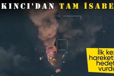 Bayraktar AKINCI TİHA, das das auf See vorrückende Ziel traf, führte einen erfolgreichen Test durch, indem es mit dem von Aselsan entwickelten inländischen elektrooptischen Aufklärungs-, Überwachungs- und Zielsystem ASELFLIR-500 ausgestattet wurde. Diese Integration und der Testschuss stellten einmal mehr die Fähigkeiten von Bayraktar AKINCI auf dem Schlachtfeld unter Beweis.