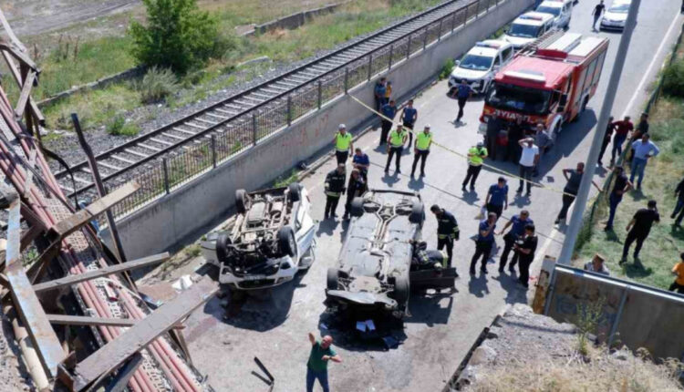 2 Fahrzeuge fielen von der 7-Meter-Brücke in Erzurum