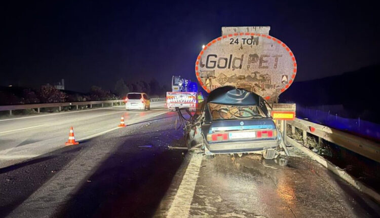 Das Auto, das auf der Autobahn Toprakkale-Erzin in Richtung İskenderun fuhr, prallte von hinten auf den in die gleiche Richtung fahrenden Tanker.
