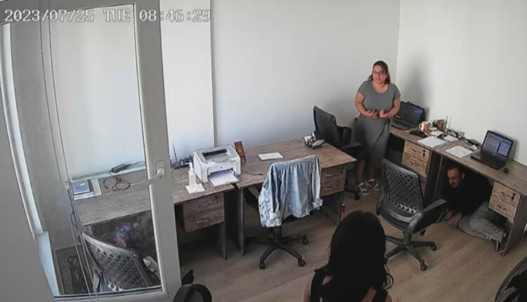 Der Moment des Erdbebens wurde auch auf einer Überwachungskamera am Arbeitsplatz reflektiert.