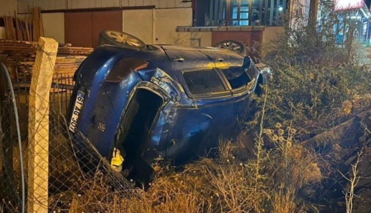 Als Folge des Verlusts der Lenkkontrolle durch den Fahrer im Bezirk Çatalçeşme in Elazig rollte das Auto, das von der Straße abkam, in den Garten.
