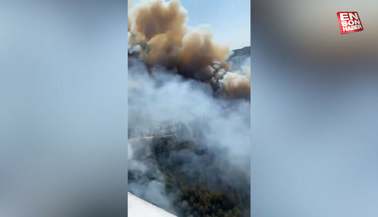 Das Feuer auf der Straße zum Flughafen Milas-Bodrum konnte aus der Luft gesehen werden