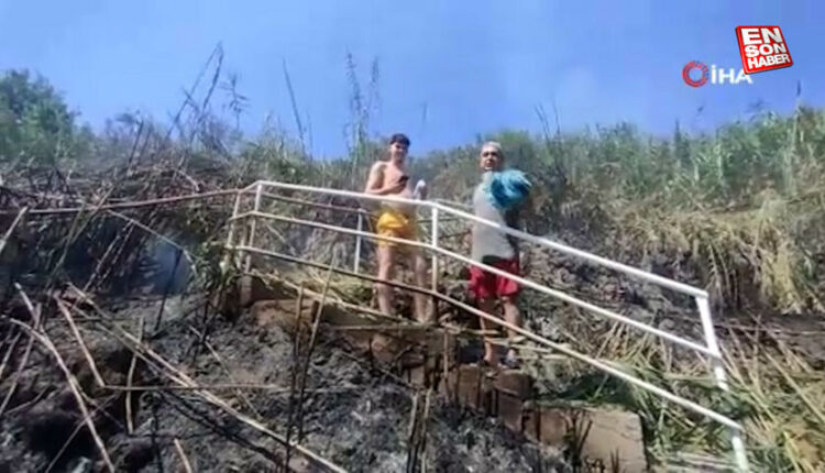 Während das Feuer, das auf den Klippen im Stadtteil Muratpaşa in Antalya ausbrach, von Feuerwehrleuten gelöscht wurde, konnte die alte Dame ihre Tränen nicht zurückhalten, weil sie dachte, dass die Tiere, die sie fütterte, verschwendet wurden. Die im Meer schwimmenden Bürger hatten große Angst.