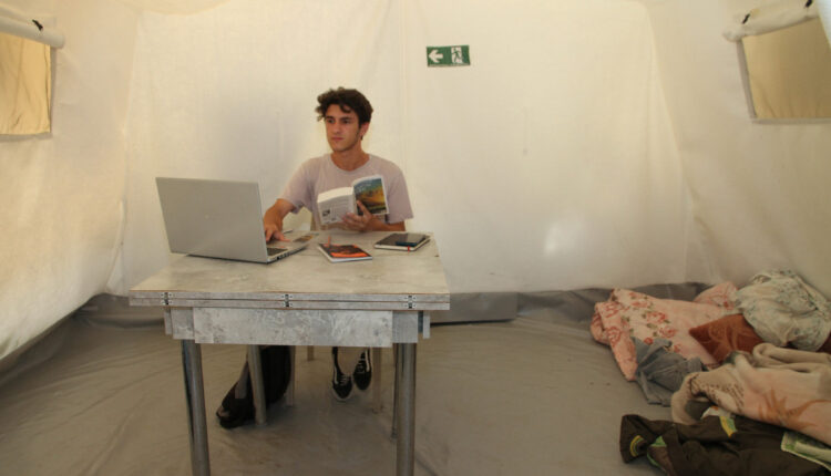 Da es am Anfang eine Zeltidee gab, mussten wir alle in einem einzigen Zelt übernachten. Allerdings habe ich meine Bücher von zu Hause mitgebracht. Wir arbeiteten irgendwie in einer Ecke des Zeltes, obwohl uns der Nacken schmerzte und wir keinen Tisch hatten. Ich habe gelernt, indem ich die Quellenbücher so weit wie möglich unterstrichen habe. Auch danach, als die Containerstadt entstand, blieben wir weiterhin im Container.“er sagte.