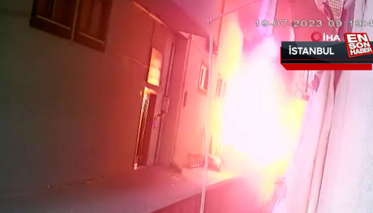Der Moment des Brandes, der zwei Gebäude in Arnavutköy in Schutt und Asche legte, wurde mit der Kamera festgehalten