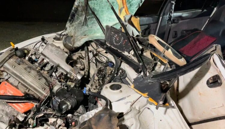 Während das Auto ins Schleudern geriet, prallte es gegen einen Baum und einen Lichtmast und kam zum Stehen.