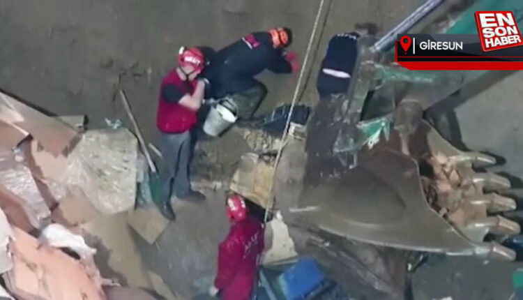 Die Arbeiten zur Rettung des Arbeiters, der in der durch den Regen verursachten Delle in Giresun zurückgeblieben ist, werden fortgesetzt.