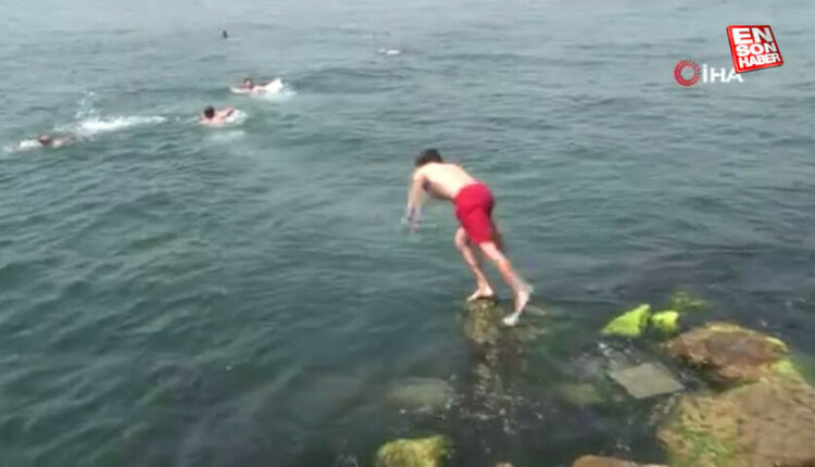 Mit dem Temperaturanstieg in Istanbul strömten die Bürger an die Küste Istanbuls. Während die Thermometer 34 Grad anzeigten, gingen diejenigen, die an die Küste von Üsküdar kamen, ans Meer, um sich abzukühlen.