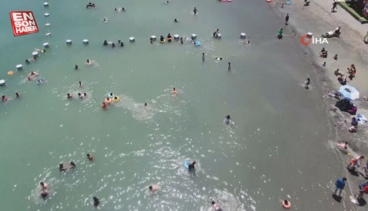 Als die Temperaturen in Elazığ über die saisonalen Normen stiegen, strömten die Bürger an die Strände des Hazar-Sees, der als „Meer des Ostens und Westens“ bekannt ist. Die Menschenmenge, die die Ägäis und das Mittelmeer hinter sich ließ, spiegelte sich in den aufgenommenen Aufnahmen wider.