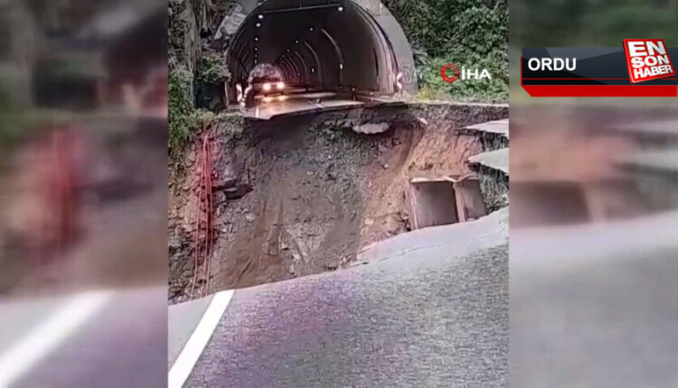 Aufgrund des starken Regens, der drei Tage lang in Ordu anhielt, stürzte die Straße am Ausgang des Tunnels im Bezirk Mesudiye der Schwarzmeer-Mittelmeer-Straße ein.