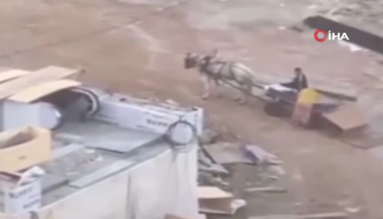 Diebe, die mit einer Pferdekutsche die U-Bahn-Baustelle in Başakşehir betraten, wurden vor der Kamera gefilmt