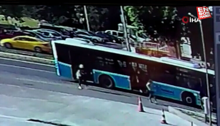 Ein Fußgänger, der im Tekirdağ-Viertel Çorlu beim Aussteigen aus dem Bus von einem Autokurier angefahren wurde, wurde verletzt. Der Moment des Unfalls wurde von der Überwachungskamera aufgezeichnet.