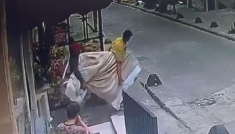 Ein Ladenbesitzer half einem Dieb in Beyoğlu, der Schwierigkeiten hatte, den von ihm gestohlenen Fernseher zu tragen.