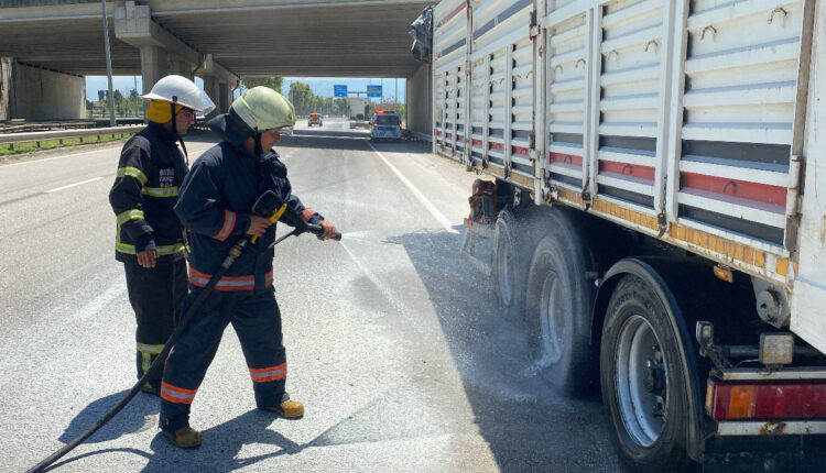 Aufgrund einer Reifenexplosion brach im Anhängerteil des MD-gesteuerten Lastwagens mit dem Kennzeichen 81 DV 880, der von Akçakoca nach Düzce fuhr, ein Feuer aus.