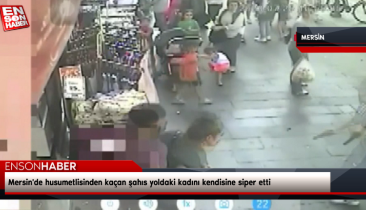 Ein Mensch, der in Mersin vor seinen Feinden flüchtete, benutzte eine Frau auf der Straße als Schutzschild für sich.