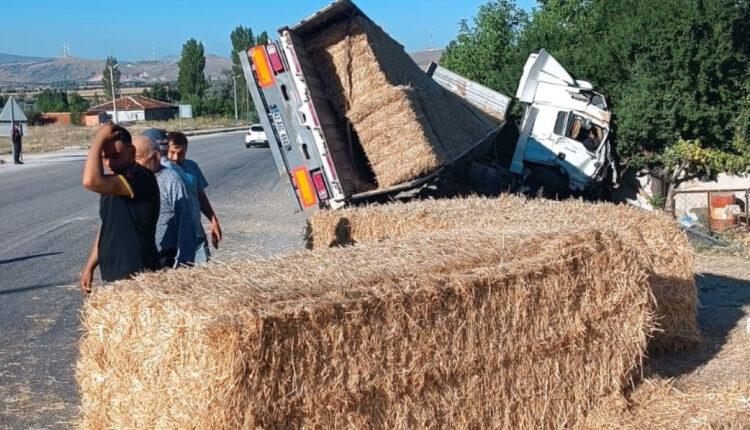Eine Frau starb, als ein Heuballen auf sie fiel, während sie in Afyonkarahisar auf einen Kleinbus wartete.