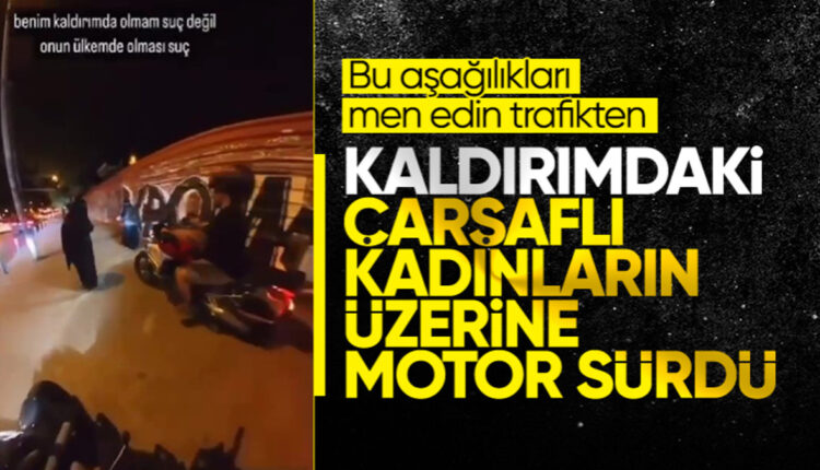 Eine Person erschreckte verschleierte Frauen, indem sie in Istanbul mit einem Motorrad auf sie losfuhr