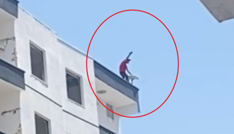 Während die 7-stöckige Ruken-Wohnung, bestehend aus 28 Wohnungen im Bezirk Huzurevleri des zentralen Bezirks Yenişehir, wegen schwerer Beschädigung evakuiert wurde, missachtete ein Bürger sein Leben und wollte die Satellitenschüssel auf dem Dach demontieren.