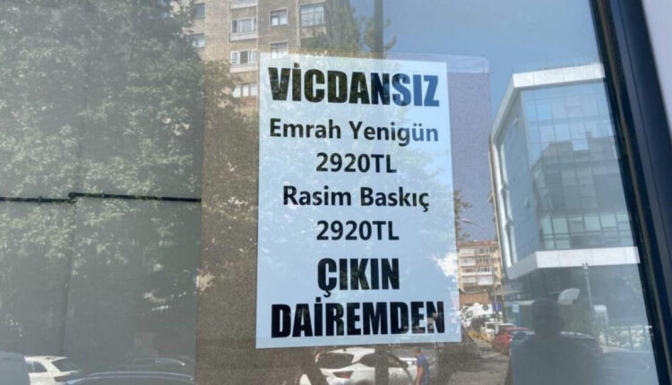 Vermieter Doğan B. schrieb auf das Schild, das er am Eingang des Gebäudes aufhängte: „Skrupellos, verschwinde aus meiner Wohnung.“Er fügte auch seine Worte hinzu.