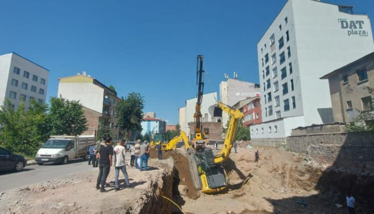 In Erzurum kippte eine Baumaschine, die im Bezirk Ömer Nasuhi Bilmen in der Märtyrer-Pilot-Cengiz-Topel-Straße Fundamentaushubarbeiten durchführte, aufgrund des rutschigen Bodens um.