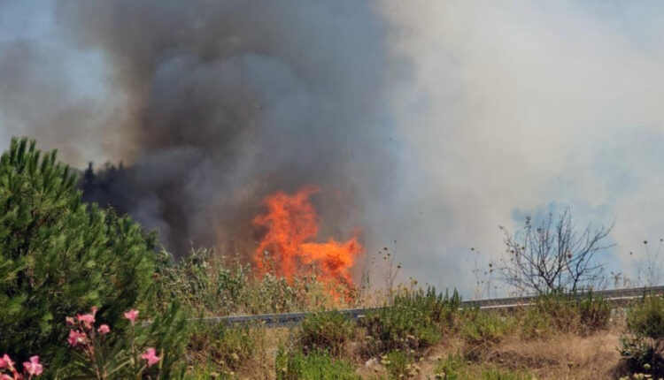 Feuer an der Kreuzung zum Flughafen Bodrum