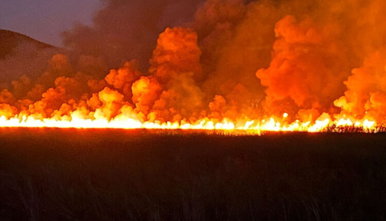 Die Teams, die das Eingreifen erschwerten, weil das Schilfgebiet ein Sumpf ist, setzen ihre Bemühungen fort, das Feuer unter Kontrolle zu bringen.