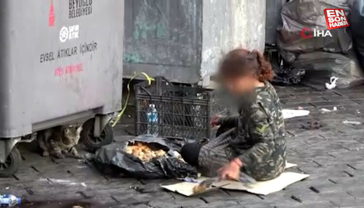 Frauen, die in Karaköy unter dem Vorwand bettelten, aus dem Müll zu essen, reagierten