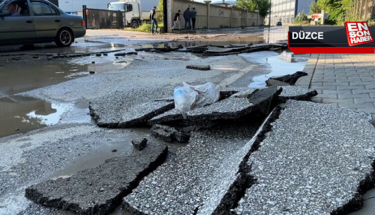 Das Ausmaß der Überschwemmung, die durch den Überlauf des Baches Melen in Düzce verursacht wurde, wurde deutlich, als das Wasser zurückging. Das Hochwasser, das den Asphalt wegspülte, verschluckte auch ein Fahrzeug.