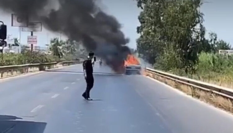Der Fahrer des Autos, das während der Fahrt Feuer fing, parkte sein Auto und sprang aus Angst um sein Leben heraus.