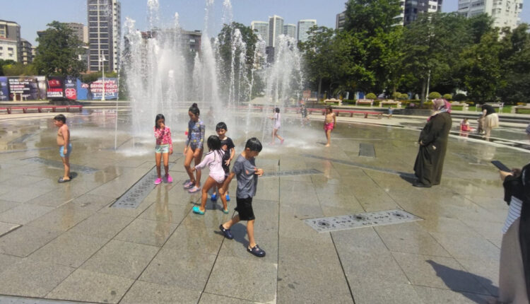 In Kadıköy vergnügten sich die Kinder mit Springbrunnen, um sich in der Hitze abzukühlen
