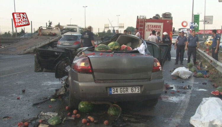 In Küçükçekmece rammte ein Auto einen mit Obst beladenen Lastwagen