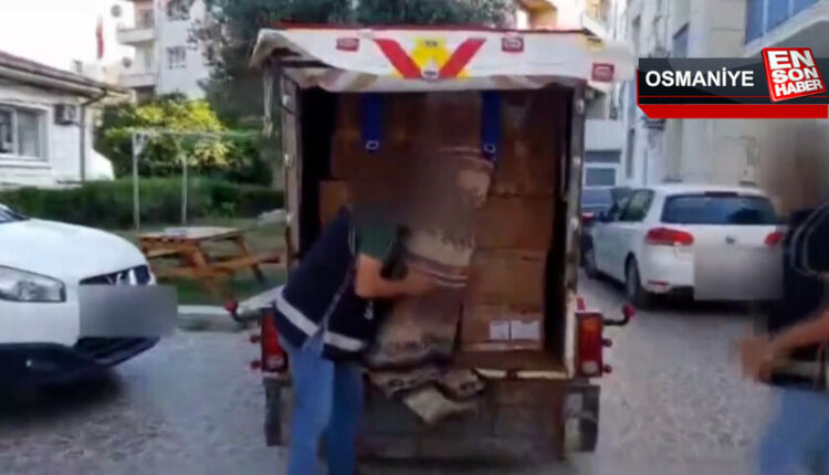 In Osmaniye wurden 26.000 Packungen geschmuggelter Zigaretten in einem Gütertransportanhänger hinter einem Kleinbus beschlagnahmt, den die Polizei vermutete und anhielt.
