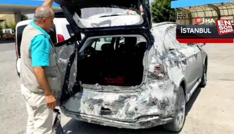 In Sultangazi wurde Beton von einem Baggerwagen auf das Auto gegossen
