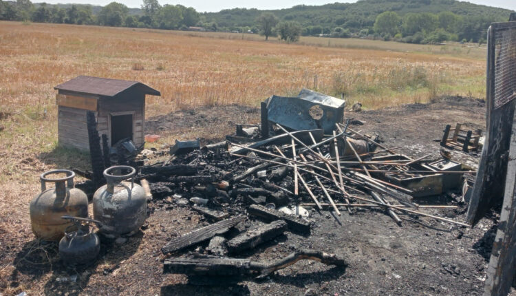 Der geparkte Kleinbus, der aus dem Verkehr gezogen und in einen Frikadellenwagen umgebaut wurde, wurde gestern Abend von einer oder mehreren unbekannten Personen verbrannt.