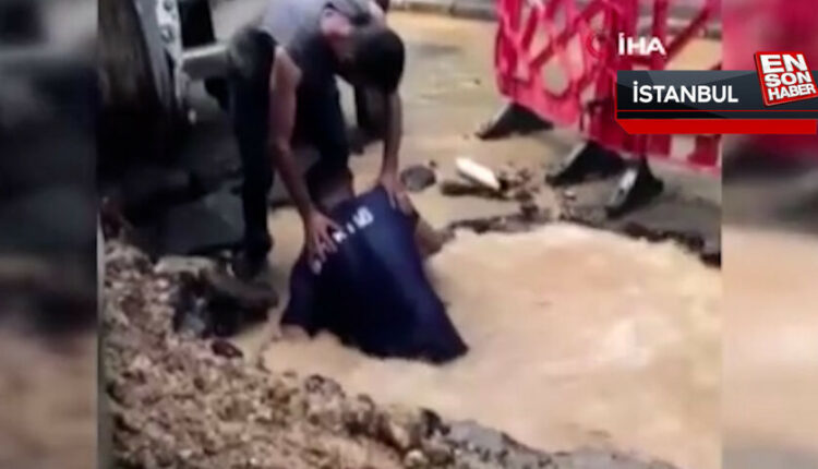 İSKİ-Mitarbeiter, der sich mit der explodierenden Wasserleitung in Ataşehir befasst, ist vor der Kamera