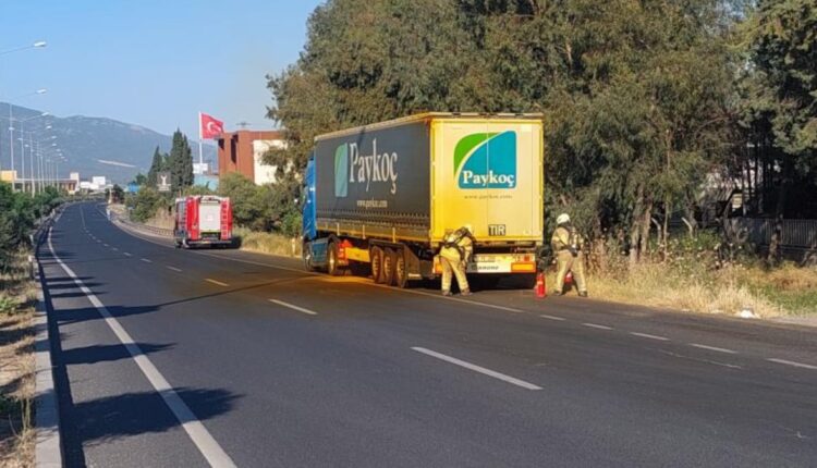 Der LKW-Fahrer, der Material in den Bezirk Söke in Izmir im Bezirk Kemalpaşa liefern wollte, bemerkte bei seiner Ankunft am Standort Taşkahve, dass aus dem Anhänger des Lastwagens Rauch in verschiedenen Farben austrat.