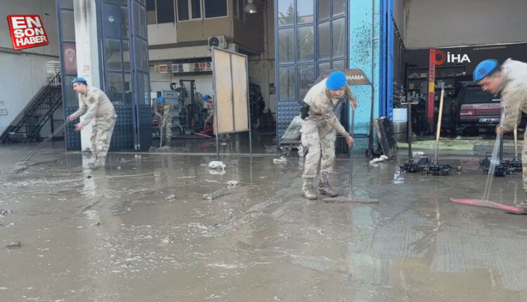 Auch Militäreinheiten beteiligten sich an den Reinigungsarbeiten in Düzce, das von den Überschwemmungen in den Küstengebieten des Schwarzen Meeres nach den heftigen Regenfällen der letzten Tage betroffen war.