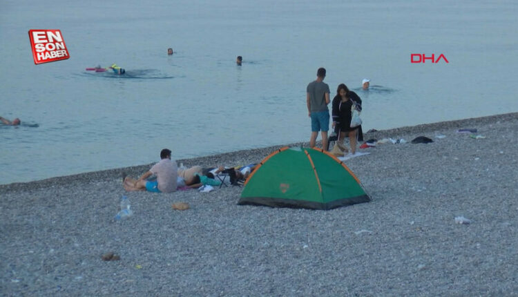 Menschen, die in Antalya von der Hitze überwältigt waren, verbrachten die Nacht am Ufer