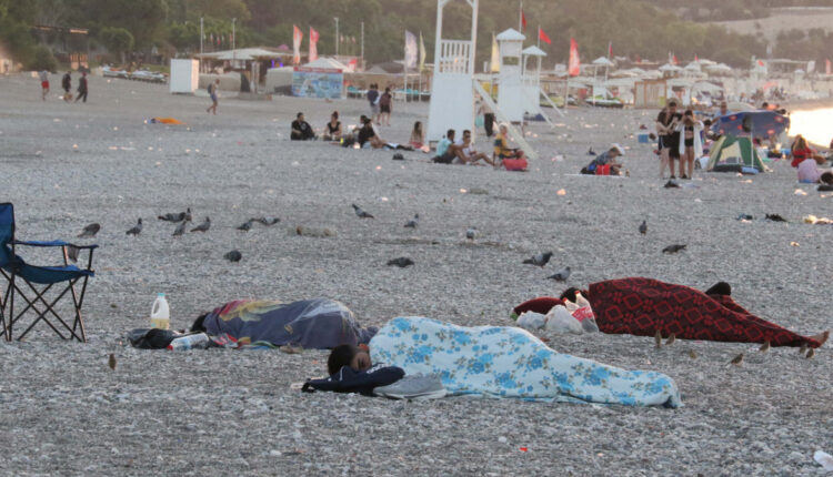 Menschen, die in Antalya von der Hitze überwältigt waren, verbrachten die Nacht am Ufer
