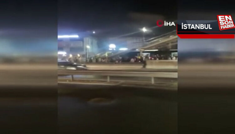 Rauch stieg aus dem Metrobus auf, der an einer Haltestelle in Istanbul eine Panne hatte, und die Bürger begannen in Panik davonzulaufen. Diese Momente wurden Moment für Moment mit der Kamera festgehalten.