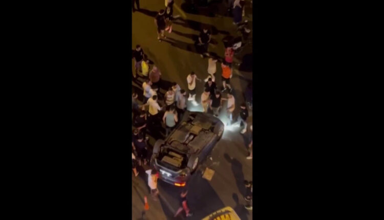 Der Kampf endete, als der Fahrer, der den Unfall verursacht hatte, vom Unfallort weggebracht wurde.