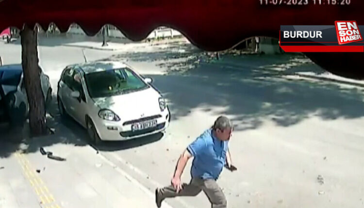 Bei der Kollision zwischen einem Polizeifahrzeug in Zivil und einem Auto in Burdur kam es zu einem Unfall, bei dem ein Bürger in letzter Minute dem Überfahren durch das Auto entkam.
