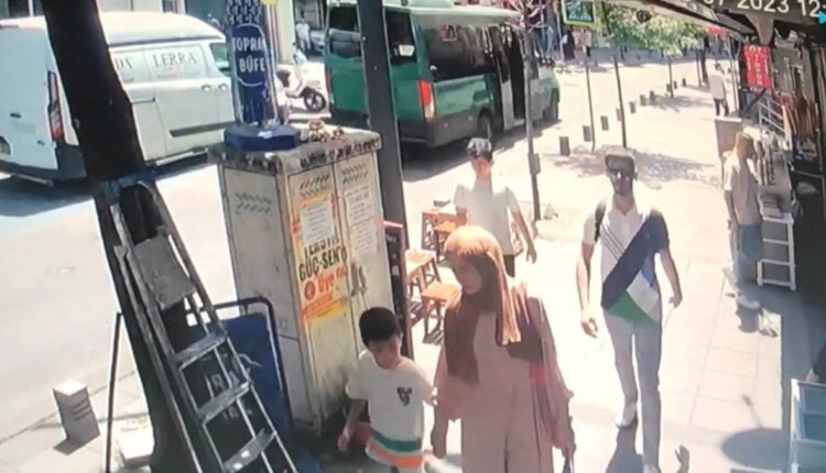 Steine ​​regneten vom Gebäude auf Bürger, die auf dem Bürgersteig in Çağlayan gingen
