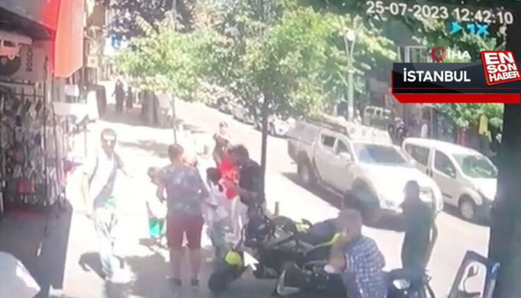 Steine regneten vom Gebäude auf Bürger, die auf dem Bürgersteig in Çağlayan gingen